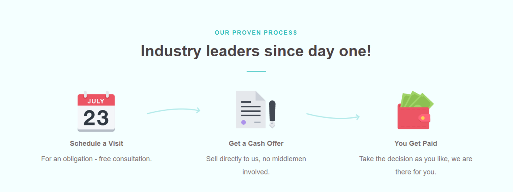 We follow a quick and simple process that makes things easy for sellers: 1.) Call us. 2.) Get your cash offer. 3.) Close on your schedule.